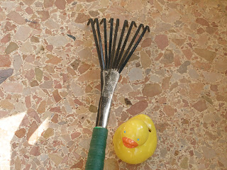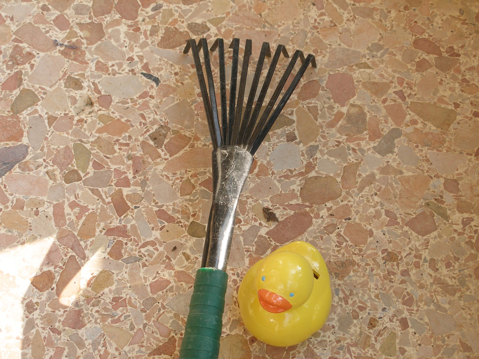 Τσουγκράνα και χτένα. Η τσουγκράνα θα σου χρησιμεύσει να απλώσεις χώμα ή σπόρο σε περίπτωση που ξανασπείρεις γκαζόν. Αλλά σίγουρα θα σου φανεί πολύ χρήσιμη στον κήπο σου γενικότερα. Η χτένα δεν είναι για να φτιάχνεις μιζανπλί και να ισιώνεις το μαλλί. Μοιάζει με την τσουγκράνα, αλλά κάνει άλλη δουλειά. Μ’ αυτήν θα μαζεύεις με ένα απαλό πέρασμα πεσμένα φύλλα, σκουπίδια, κλαδιά, που θα κείτονται κατάχαμα στον χλοοτάπητά σου.