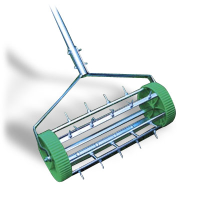 Εξαερωτήρας χειροκίνητος κινούμενος. Κάνει την ίδια δουλειά με τον κυρ εξαερωτήρα πιο πάνω, αλλά τον κατρακυλάς πάνω στο έδαφος, δεν τον πατικώνεις με το πόδι όπως τον κυρ εξαερωτήρα πιο πάνω. Όπως το κλασικό παιδικό κατρακύλι, αλλά με πολύ περισσότερη δύναμη. Δουλειά του είναι να κάνει τρύπες μικρής διαμέτρου στο έδαφος. Κατάλληλο για μεσαίου μεγέθους επιφάνειες γκαζόν.