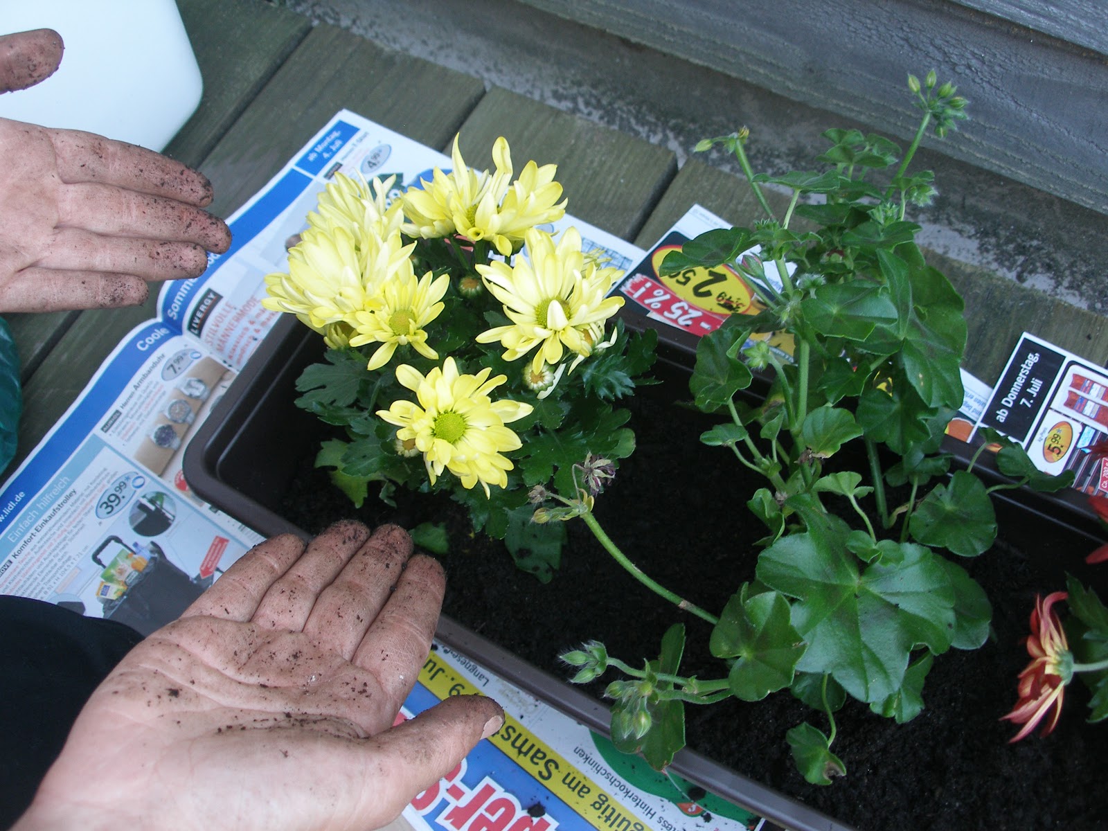 Φύτεψε τα λουλούδια που διάλεξες. Το Κηπολόγιο για τις δύο ζαρντινιέρες στο μικρό μπαλκόνι της κυρα Μερόπης διάλεξε χρυσάνθεμα και μαστιχιές. Τσουπ, έτοιμα!