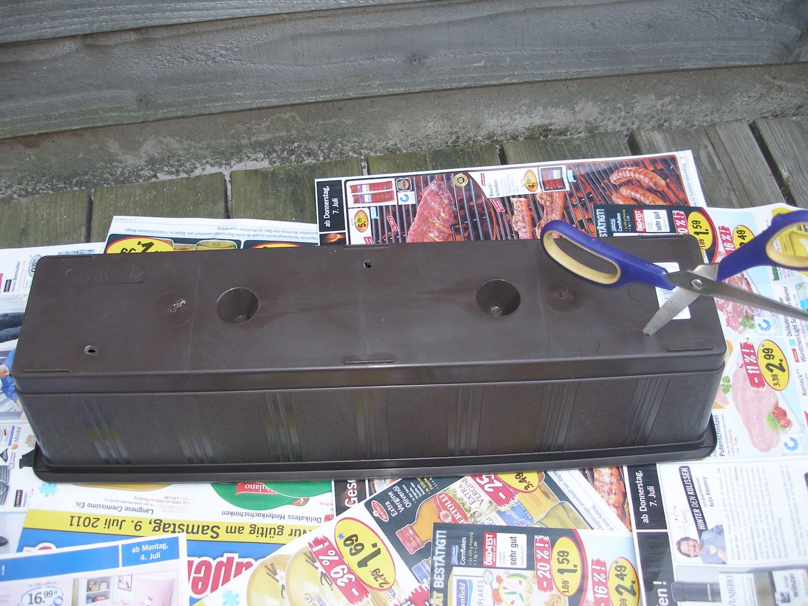 Συναρμολογείς τα κρεμαντζούλια και ανοίγεις με ένα αιχμηρό αντικείμενο – η λίμα για τα νύχια δεν είναι κατάλληλη – μικρές τρύπες στον πάτο της ζαρντινιέρας για να φεύγει το νερό.