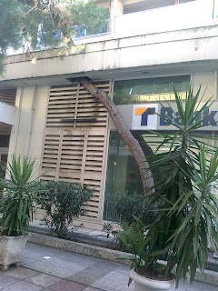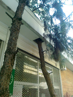 Άλλη μία αναγνώστρια, γνωστή στην πιάτσα με το ψευδώνυμο Κορίτσαρος, είναι στην ευχάριστη θέση να αντικρίζει κάθε μέρα δύο και τρεις φορές αυτό το αριστούργημα. Για να εξηγούμαστε: απαγορεύεται να κόβεις οποιοδήποτε δασικό είδος, είτε αυτό είναι στο δάσος, είτε πάνω στην Τσιμισκή. Στην προκειμένη περίπτωση, αυτά τα δέντρα ήταν σε σημεία με πολύ κακό φενγκ σούι: ενοχλούσαν τον εργολάβο. Και τι να κάνει, τι να κάνει. Έξινε το κεφάλι του,τα ‘φερε από ‘δω, τα ‘φερε από ‘κει, ρώτησε και το autocad, και το autocad του απάντησε: αντί να κάνεις trim τα δέντρα, κάνε tryp στα τσιμέντα.