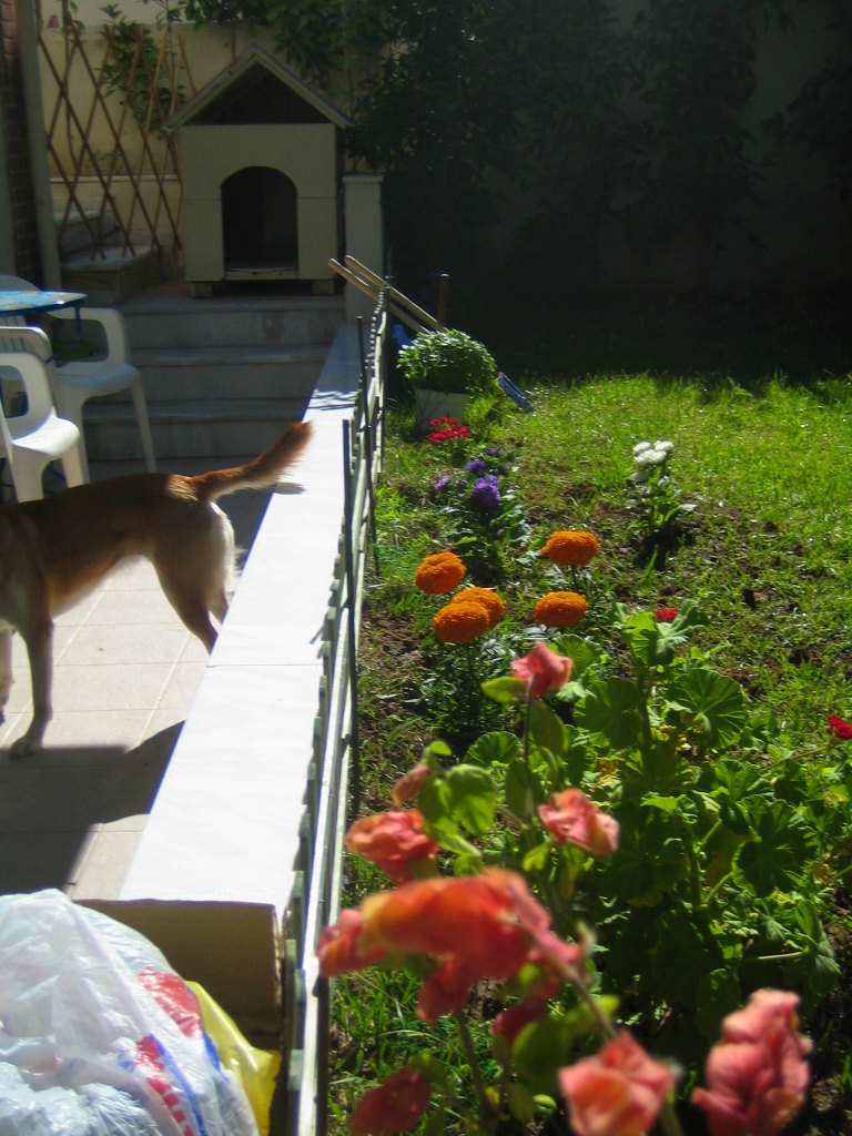 | Γαριδάκι και καtιφέδες, και ο σκύλος μπροστά στο σπίτι του |