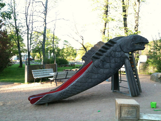 Και της είπε ο Σουηδός: “Α, hemnes malm lack liatorp mammut karlstadt!” Και την πήγε κατευθείαν στον Göteborgs botaniska trädgård (γκετεμποργκ μποτανισκα Τρέντγκορντ). Δηλαδή ο κήπος στα Σουηδικά είναι Τρέντγκορντ. Άρα το κηπολόγιο: Τρεντγκορντολόγιο.Αλήθεια είναι ότι εκείνη η τσουλήθρα με το δρακόψαρο με τρόμαξε ολίγον τι. Αν ήμουν παιδάκι δε θα ανέβαινα. Και αυτή η παιδική χαρά δωρικού ρυθμού μου φαίνεται κομματάκι παράταιρη. Αλλά τι να πεις…
