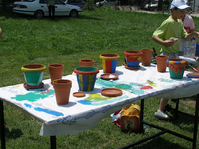 Τα παιδιά, έβαψαν πολύχρωμα τα γλαστράκια τους με μπογιές.