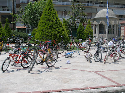 Μέχρι να στεγνώσουν οι μπογιές, έκαναν βόλτες στο χωριό με τα ποδήλατά τους.