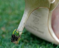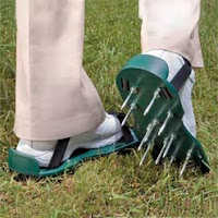 Παπούτσια με καρφιά. Αυτά είναι ένα ζευγάρι παπούτσια που τα φοράς πάνω στα άλλα κανονικά σου υποδήματα και περπατάς ανέμελος στον χλοοτάπητα κάνοντας τρύπες. Όχι, και τόσο ανέμελος. Λίγο. Πολύ λίγο. Σχεδόν καθόλου. Μετά από 27 βήματα νιώθεις ότι δεν μπορείς να πάρεις τα πόδια σου. Κατάλληλο για πολύ μικρές επιφάνειες γκαζόν.