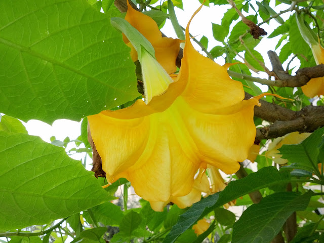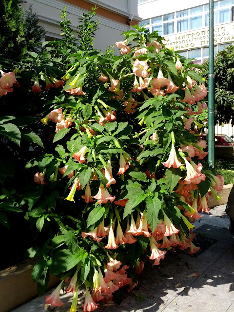 Ο λόγος για την Brugmansia. Σου λέω, αν είσαι κοντοχωριανός το πολύ πολύ να την έχεις δει στη Χαλκιδική (σαν την οποία δεν έχει, να τα λέμε αυτά). Αν είσαι πιο νότιος τύπος, τότε σίγουρα γνωρίζεις εκείνο το ψηλό δέντρο με τις τεράστιες κρεμαστές ντουντούκες που κοιτάζουν νωχελικά το πάτωμα. Πανέμορφη είναι! Δες φωτογραφίες. Δες!