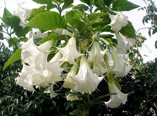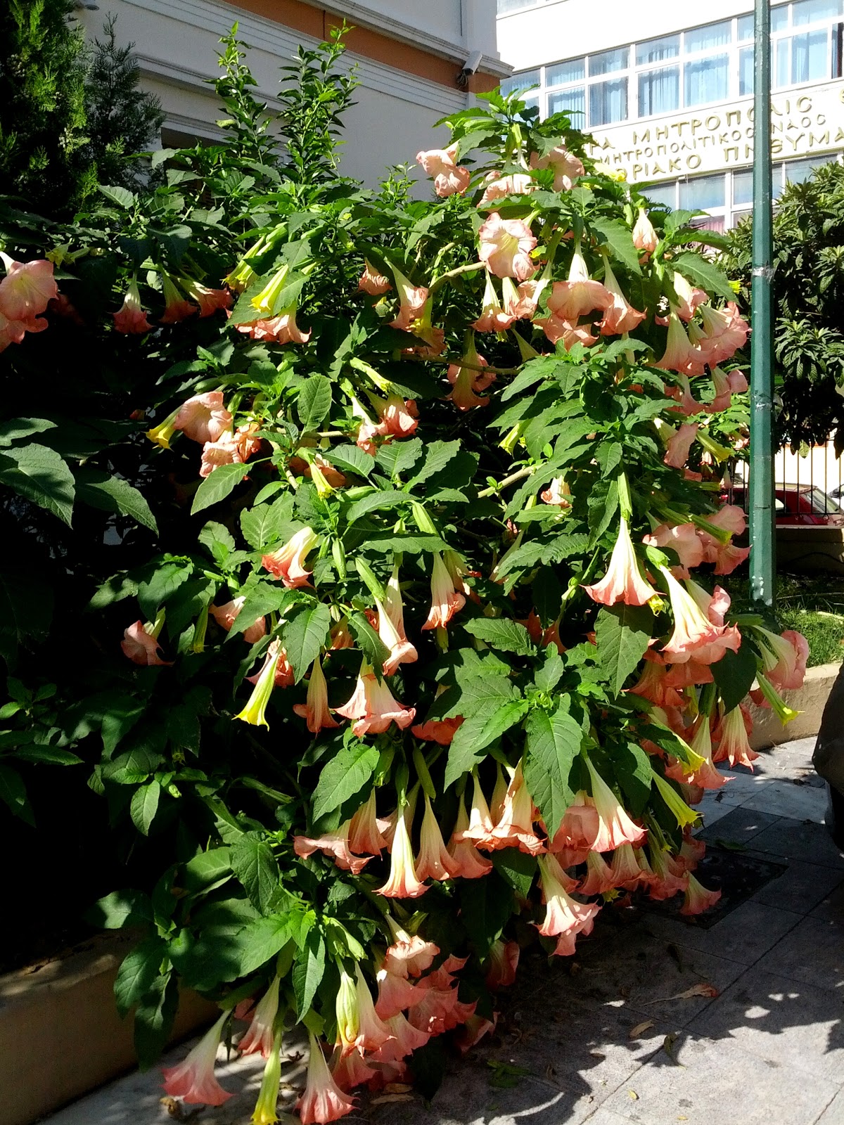 Ο λόγος για την Brugmansia. Σου λέω, αν είσαι κοντοχωριανός το πολύ πολύ να την έχεις δει στη Χαλκιδική (σαν την οποία δεν έχει, να τα λέμε αυτά). Αν είσαι πιο νότιος τύπος, τότε σίγουρα γνωρίζεις εκείνο το ψηλό δέντρο με τις τεράστιες κρεμαστές ντουντούκες που κοιτάζουν νωχελικά το πάτωμα. Πανέμορφη είναι! Δες φωτογραφίες. Δες!