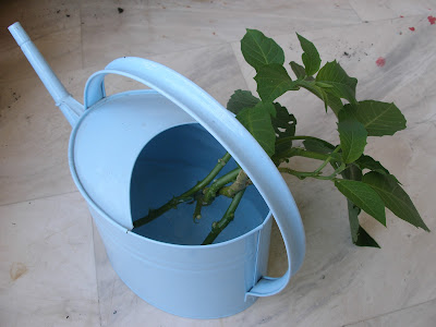 Φύτεψε τα μοσχεύματά σου και πότισε ελαφρά. Μην παραποτίσεις, γιατί θα σαπίσουν τα μοσχεύματα. Έτοιμο το νέο σου φυτό. Καλό θα είναι να το έχεις και σε προστατευμένο περιβάλλον, π.χ. καπακωμένο με κομμένο πλαστικό μπουκάλι. Μετά από καιρό περίμενε και θα δεις να βγάζουν νέα φυλλαράκια και αργότερα θα το δεις ότι ρίζωσε και θα το μεταφυτέψεις στο τελικό του σημείο.