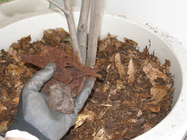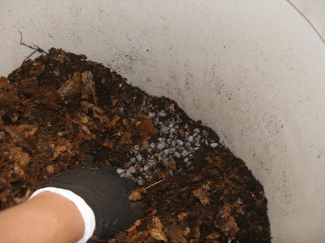 Αν θέλεις μπορείς να στρώσεις στην επιφάνεια φλοιό πεύκου για να ομορφύνει λιγάκι και να μη βλέπεις την χωματίλα και να κρατάει και την υγρασία τους καλοκαιρινούς μήνες.