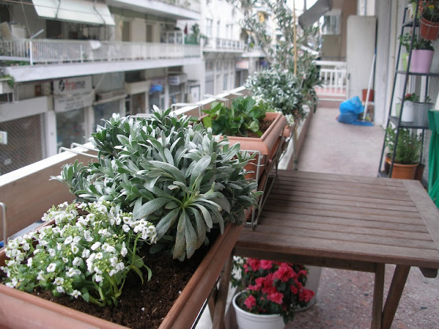 Φύτευε ασταμάτητα: αρωματικά, λουλούδια, μικρά γλαστράκια, μεγάλες ζαρντινιέρες, κρεμαστά, ξεκρέμαστα, πήλινα, τσίγκινα. Λουλούδια μπόλικα: πρίμουλες, νεραγκούλες, πανσεδάκια, ρίγανη, θυμάρι…