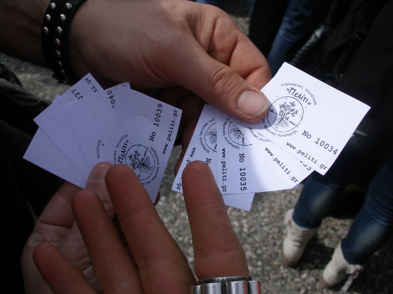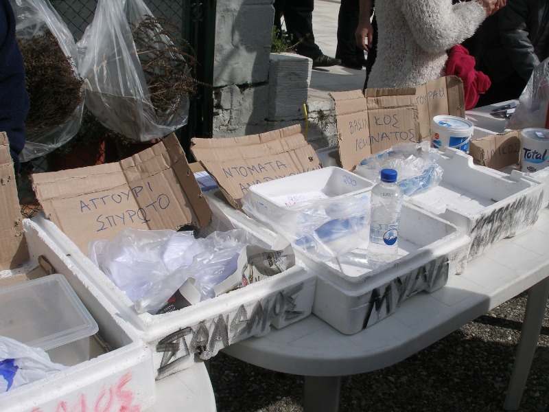 Στο τέλος μοιράστηκαν τα σποράκια. Ο κάθε ένας παρευρισκόμενος μπορούσε να πάρει 4 κουπόνια δωρεάν και να τα ανταλλάξει με 4 σακουλάκια σπόρων. Μόνη “υποχρέωση” του κάθε ένα που πήρε σπόρους είναι να τους σπείρει και να τους συλλέξει για την επόμενη χρονιά. Και γιατί όχι, να τους μοιράσει και σε φίλους του. Ιδού εργατικά αγροτικά χέρια, που πιάνουν το πατόφτυαρο και του αλλάζουν τα φώτα, με τα μαγικά χαρτάκια.