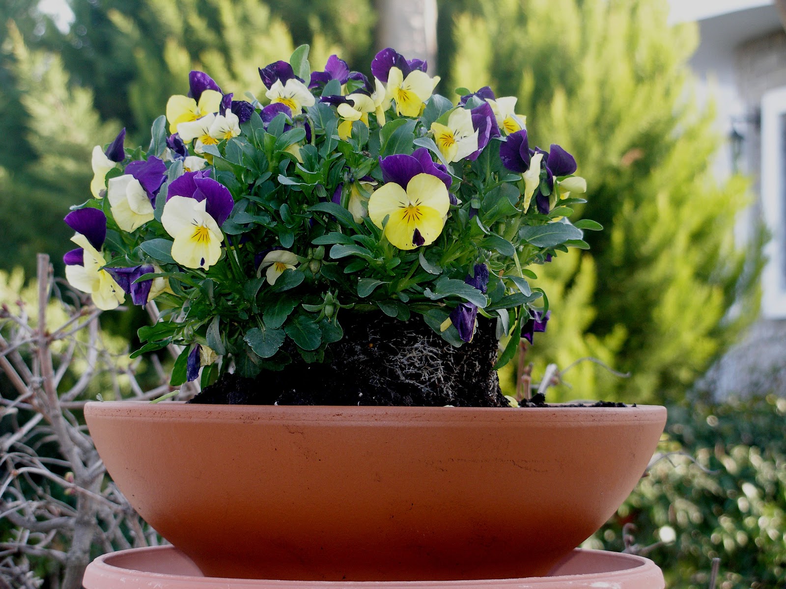 -Α, νομίζω ότι είναι πολύ μεγάλοι για τα γλαστράκια μου. Αλλά δε πειράζει, θα τους πάρω. Θα τους φυτέψω και δεν πειράζει αν προεξέχει η μισή μπάλα με ρίζα. Ας είναι στον αέρα. Ο πανσές θα είναι υπερυψωμένος. Μεζονέτα.