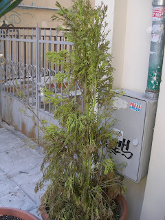Το καλύτερο στο άφησα για το τέλος. Είναι ένα κωνοφόρο. Εκ πρώτης όψεος μοιάζει πράσινο και ζωντανό. Τι; Δεν είναι ζωντανό; Σιγά, επειδή γέρνουν προς τα κάτω όλα τα κλαδιά του; Σιγά. Ναι, αλλά είναι πράσινο!