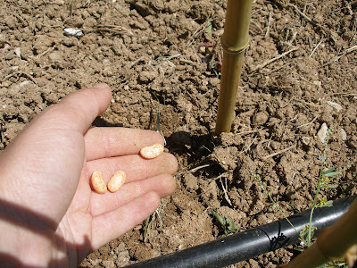 Αφού φτιάξεις τα στηρίγματα, βάζεις 2 σπόρους από την ίδια ποικιλία σε τρυπούλες περίπου 5 εκατοστά βαθιά, στη βάση του κάθε στηρίγματος.