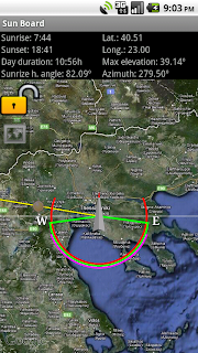 Ένας άλλος τρόπος, σαφώς πιο ξεκούραστος και με τη βοήθεια μόνο ενός κλίκ είναι να το απλικέισον Sun Board που θα κατεβάσεις στο κινητό σου. Θα σου δίνει όλες τις παραπάνω πληροφορίες κάθε φορά για το σημείο που βρίσκεσαι!