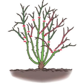 - Στο τέλος του μήνα ξεκίνησε να κλαδεύεις τις τριανταφυλλιές σου. Μη τις λυπάσαι, ένα σούπερ χαμηλό κλάδεμα είναι καλύτερο από το να κλαδέψεις μόνο τα πάνω πάνω κλαδιά. Κλάδεψε ότι υπάρχει περίπου 30 εκ. πάνω από το έδαφος, ώστε στο τέλος να μείνει ο κύριος κορμός από τον οποίο θα διακλαδίζονται 3-5 κλαδιά. Να, κάπως έτσι: