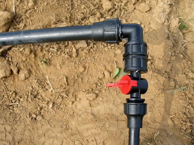 Βήμα έκτο: αφού απλώσεις τον Φ16 σωλήνα, τον συνδέεις στον κεντρικό σου σωλήνα που είναι Φ20 – Φ25. Τον συνδέεις και αν θέλεις και βάζεις και μικρά βανάκια ώστε να ανοίγεις ξεχωριστά γραμμές γραμμές για πιο προγραμματισμένο πότισμα.