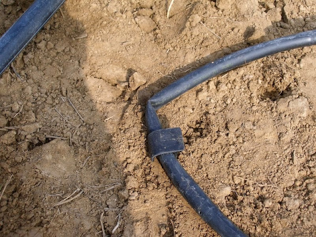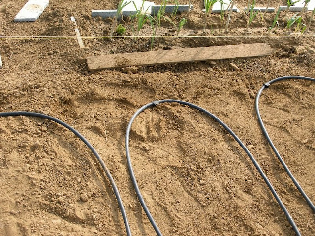 Βήμα πέμπτο: έχεις ήδη μετρήσει πόσα μέτρα σωλήνα θέλεις, γιατί έχεις ήδη αποφασίσει πόσες σειρές λαχανικά θα φυτέψεις. Πάρε, λοιπόν, μία κουλούρα με σταλακτηφόρο σωλήνα Φ16 και άπλωσέ τον πέρα ως πέρα στο χωραφάκι σου, παράλληλα το ένα λάστιχο με το άλλο. Tip: θα δυσκολευτείς να κουμαντάρεις την κουλούρα, είμαι σίγουρη. Ξετύλιξε αρκετά μέτρα και άστην να κάνει ηλιοθεραπεία. Η ζέστη θα μαλακώσει το σωλήνα και θα το δουλεύεις πιο εύκολα.