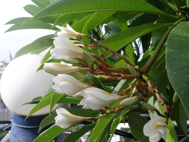 Είχα ξαναπάει στην ταράτσα, πέρσι το φθινόπωρο, γιατί είχα γράψει για αυτή στον Ερασιτέχνη Κηπουρό. Αλλά πού να φανταζόμουν τώρα τι ήταν αυτό που με περίμενε; Έμεινα με το στόμα ανοιχτό, αλλά το έκλεισα γρήγορα για να μη χάψω κάνα μυγάκι. Να σημειώσουμε το πάρα πολύ σημαντικό: ο κ.Θ. φροντίζει μόνος του όοοοολα αυτό το αριστούργημα. Μόνος του! Ντιπ κατά ντιπ μόνος του! Άξιος κηπουρός!