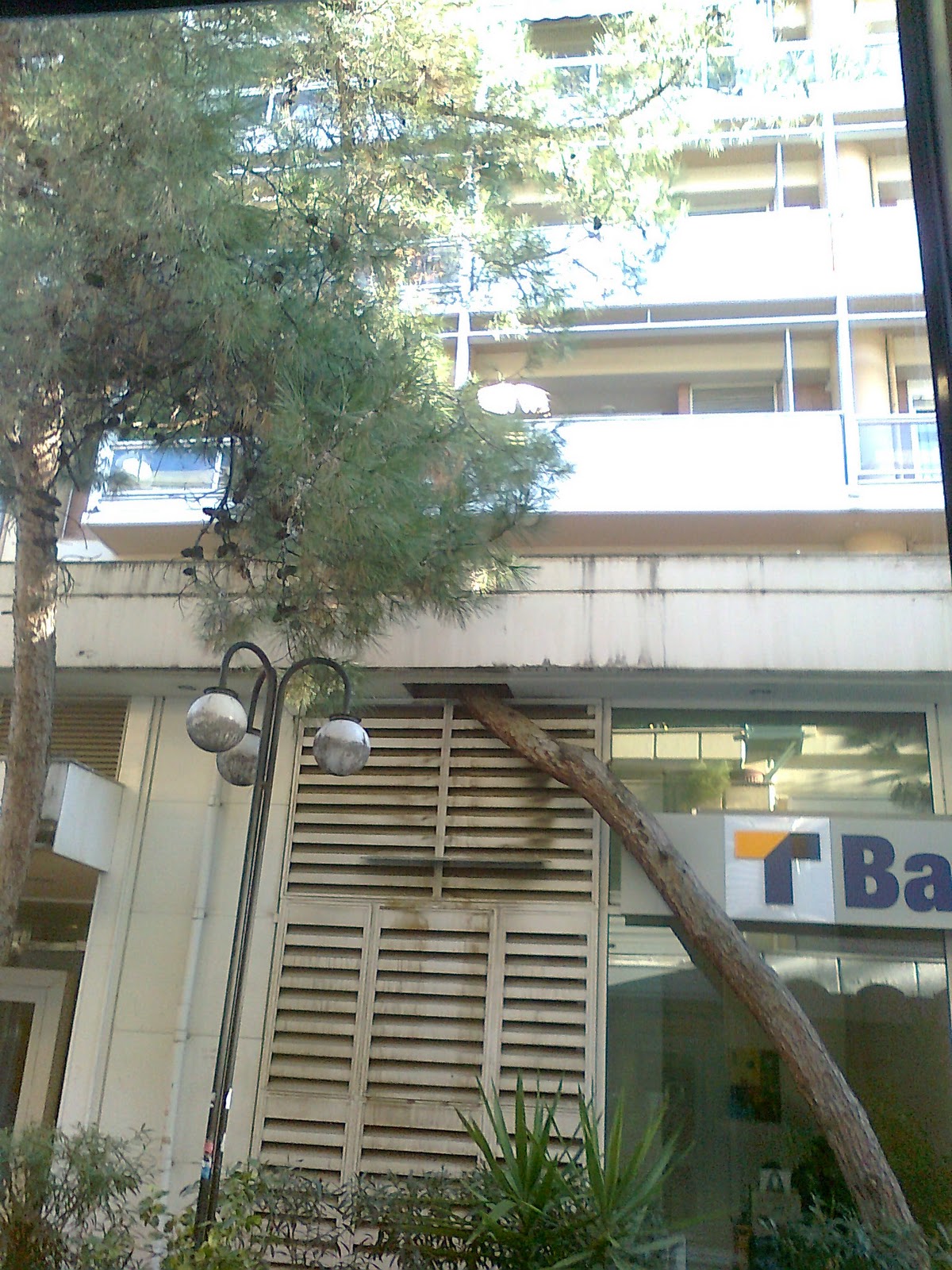 Άλλη μία αναγνώστρια, γνωστή στην πιάτσα με το ψευδώνυμο Κορίτσαρος, είναι στην ευχάριστη θέση να αντικρίζει κάθε μέρα δύο και τρεις φορές αυτό το αριστούργημα. Για να εξηγούμαστε: απαγορεύεται να κόβεις οποιοδήποτε δασικό είδος, είτε αυτό είναι στο δάσος, είτε πάνω στην Τσιμισκή. Στην προκειμένη περίπτωση, αυτά τα δέντρα ήταν σε σημεία με πολύ κακό φενγκ σούι: ενοχλούσαν τον εργολάβο. Και τι να κάνει, τι να κάνει. Έξινε το κεφάλι του,τα ‘φερε από ‘δω, τα ‘φερε από ‘κει, ρώτησε και το autocad, και το autocad του απάντησε: αντί να κάνεις trim τα δέντρα, κάνε tryp στα τσιμέντα.