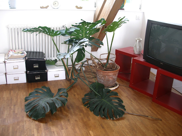 | Μονστέρα που ήταν μια σταλιά και έγινε τόσο μεγάλη μέσα σε λίγους μήνες, βγήκε από τη γλάστρα και πλέον σέρνεται στα πατώματα και την σπρώχνεις στο σφουγγάρισμα |