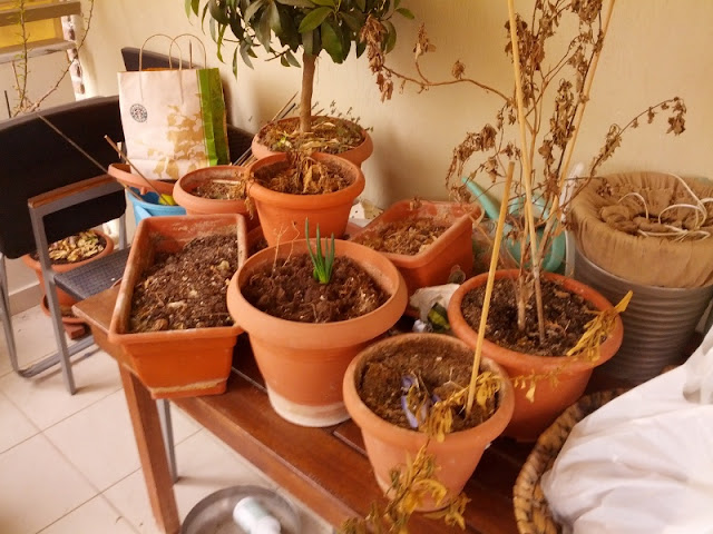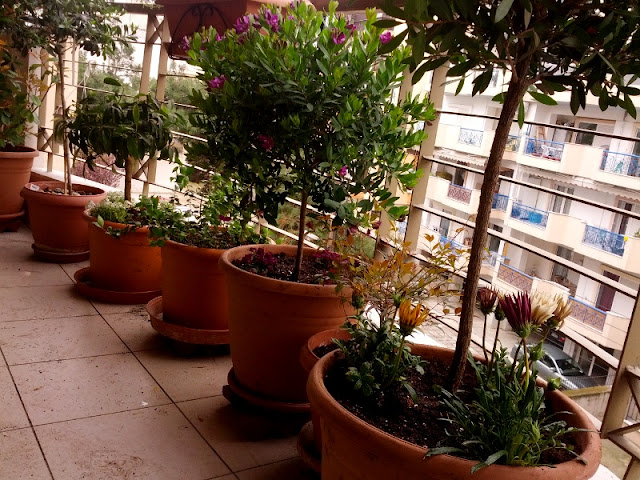 | Στις γλάστρες φυτεύτηκαν γκαζάνια και άλυσσος για να γεμίσουμε χρώματα κι αρώματα αντίστοιχα |